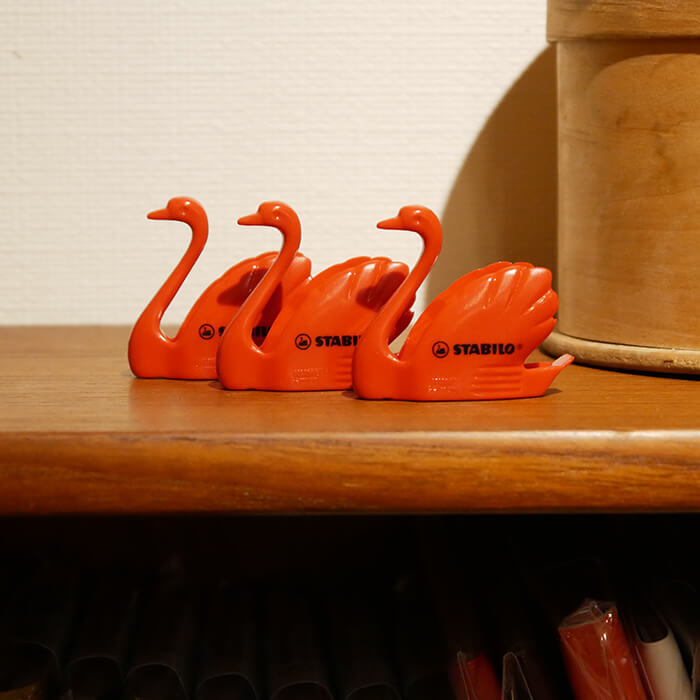 白鳥モチーフはデスクの上で目を引きます